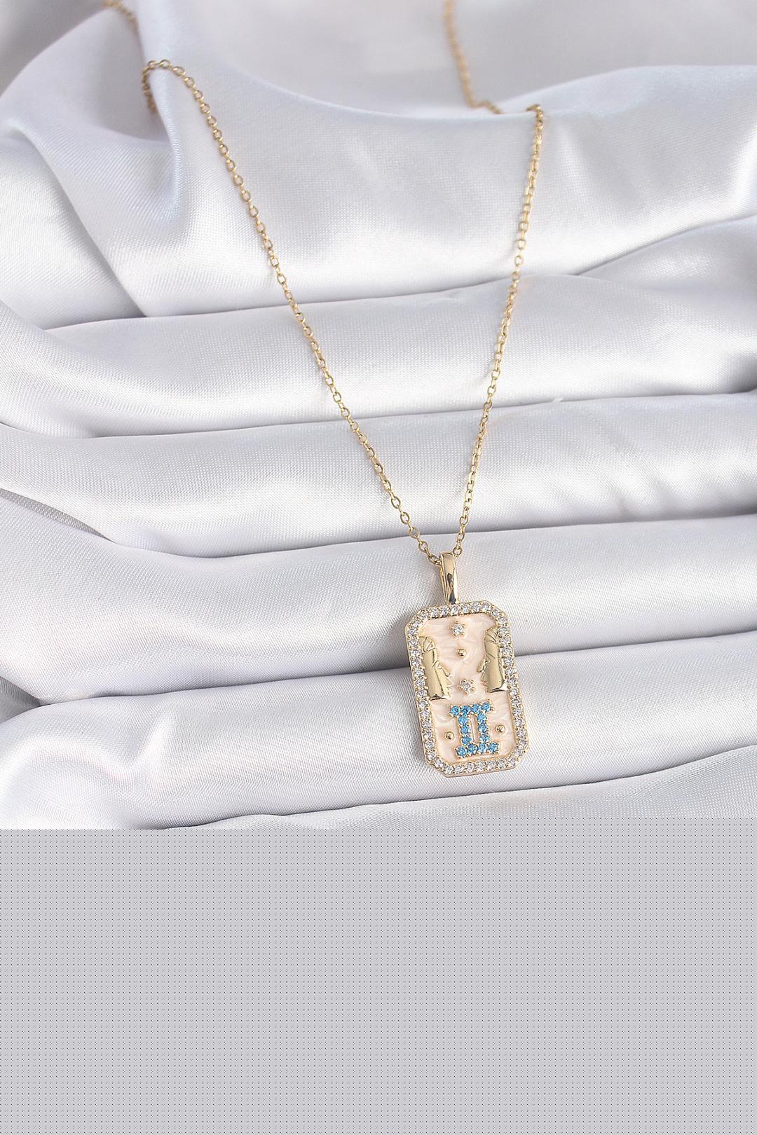 316L Çelik Gold Renk Zincir İkizler Burcu Zirkon Taşlı Kadın Kolye