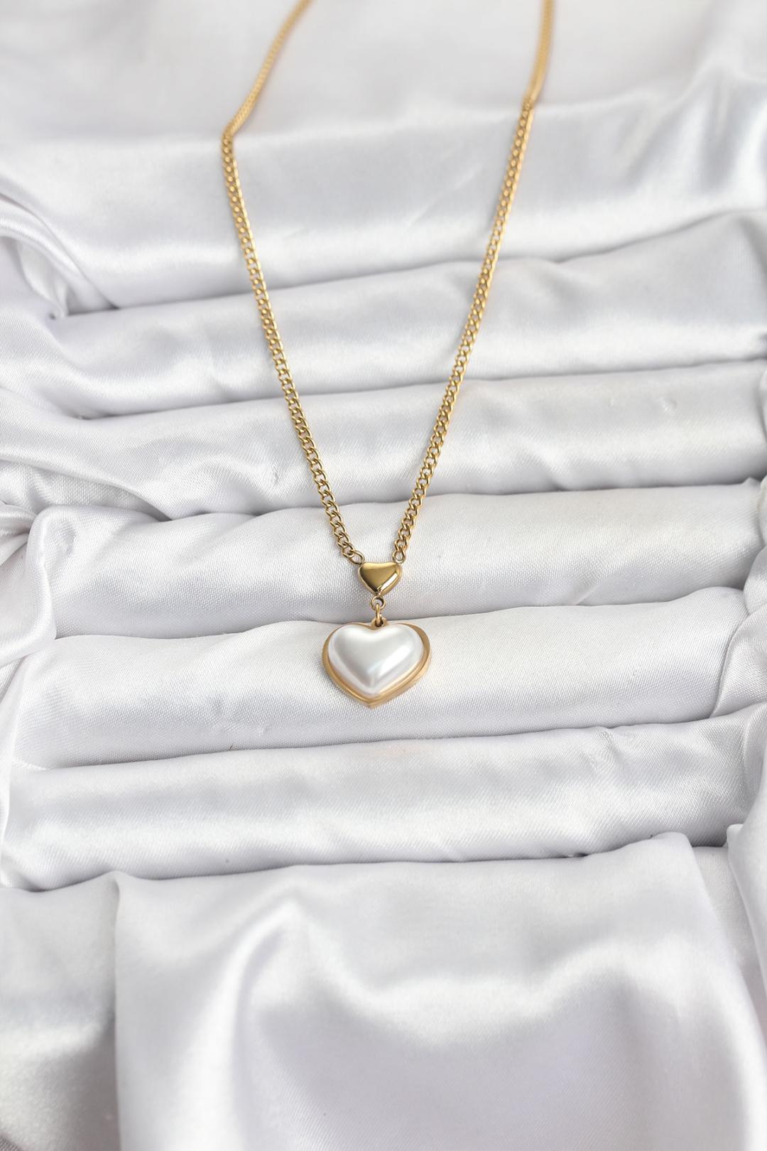 316L Çelik Zincir Gold Renk Bombeli Kalp Model Kadın Kolye BKO10685
